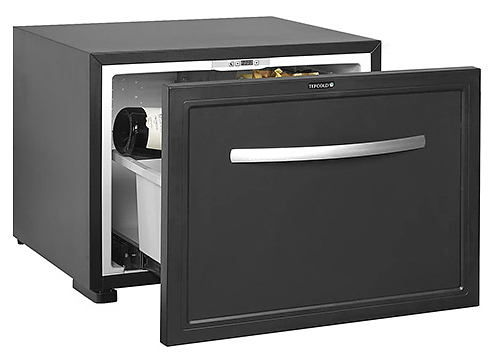 Минибар TEFCOLD TD50A предназначен для охлаждения и кратковременного хранения скоропортящихся продуктов и напитков в отелях и гостевых домах. Модель оснащена глухой выдвижной дверью с ручкой и дополнительным выдвижным ящиком внутри. Система охлаждения компрессорного типа обладает пониженным уровнем шума. Особенности: