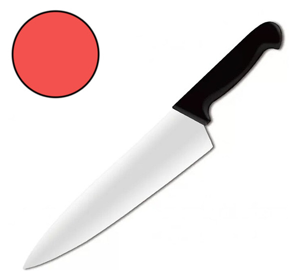 Поварской нож MACO 413947 используется на предприятиях общественного питания и торговли, в частных домах и квартирах для нарезки овощей, зелени, мяса, рыбы, птицы и других продуктов. Лезвие выполнено из высококачественного стального сплава X50crmov15, ручка - из красного пластика.