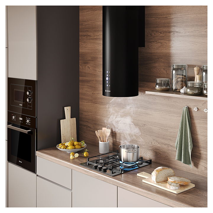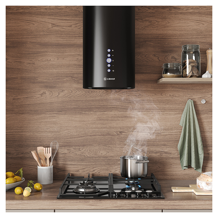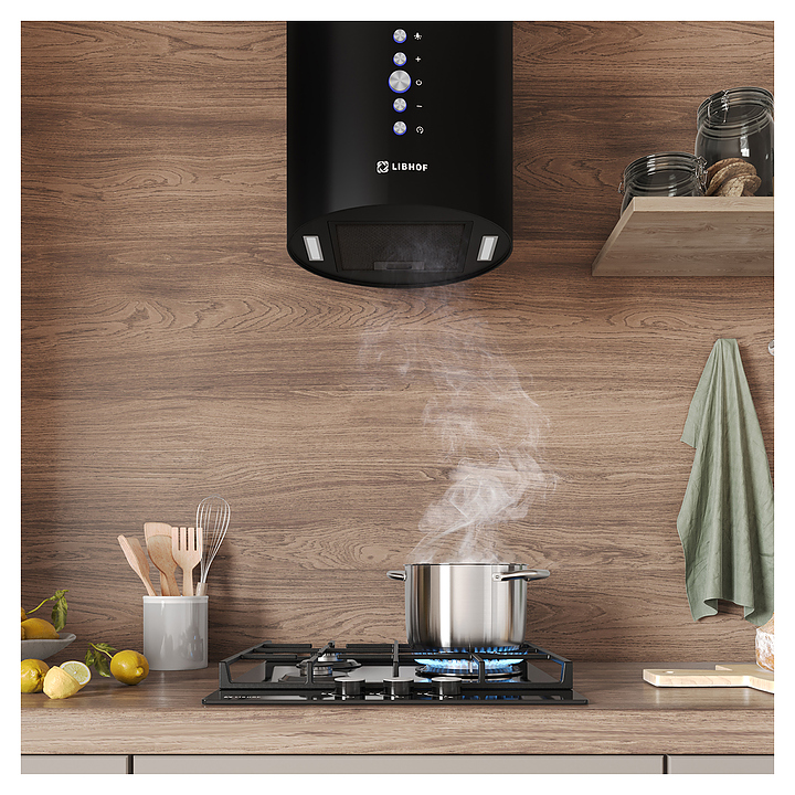 Пристенная кухонная вытяжка Libhof LL-0935 black предназначена для очистки воздуха от продуктов горения, копоти и запахов в процессе приготовления пищи путем принудительной вентиляции в домашних условиях. Модель оснащена вентилятором с электродвигателем, 2 прямоугольыми светодиодными светильниками, кабелем питания с вилкой и панелью управления с нажимными клавишами с голубой подсветкой. Корпус цилиндрической формы выполнен из высококачественной стали с термостойким покрытием эмалью черного цвета, жироулавливающий фильтр – из алюминия, фурнитура с серебристой поверхностью. В комплект поставки входят набор монтажных креплений, 2-лепестковый антивозвратный клапан, шаблон для монтажа, инструкция по эксплуатации, гарантийный талон и заводская упаковка. Особенности: