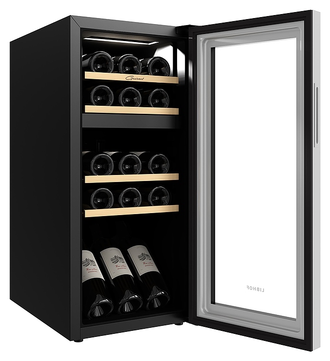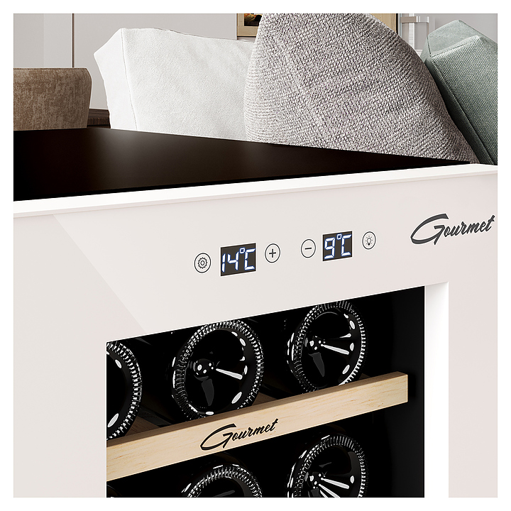 Винный шкаф Libhof Gourmet GMD-15 white предназначен для хранения при оптимальных условиях и демонстрации бутилированного вина различных сортов в барах, ресторанах, специализированных магазинах, подсобных складских помещениях, а также в домашних условиях. Модель оснащена холодильной камерой с 2 независимыми температурными зонами, правосторонней распашной дверью, прозрачным обзорным остеклением и внешней сенсорной панелью управления с 2 цифровыми дисплеями индикации. Корпус выполнен из металла с антикоррозийным покрытием черного цвета, рама двери с белым покрытием и полным остеклением фронта, полки – из массива буковой древесины. В комплект поставки входят 4 полки с направляющими для размещения бутылок, инструкция по эксплуатации и гарантийный талон. Особенности:
