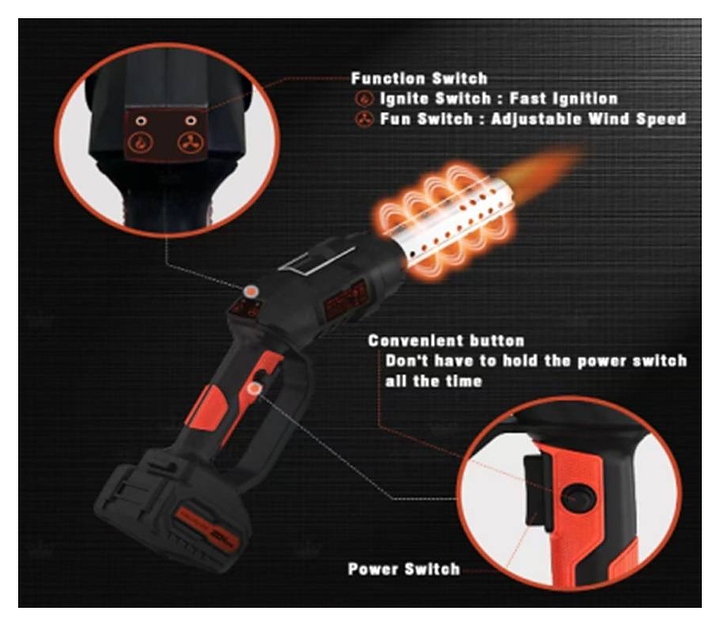 Стартер-фен используется совместно с пеллетными грилями EGER для быстрого и удобного розжига грилей, печей и очагов. Функция раздува пламени сделает процесс еще более эффективным. Удобный корпус, емкая литиевая батарея и мощный поджиг – идеальный инструмент для любителей готовить на огне. Характеристики: