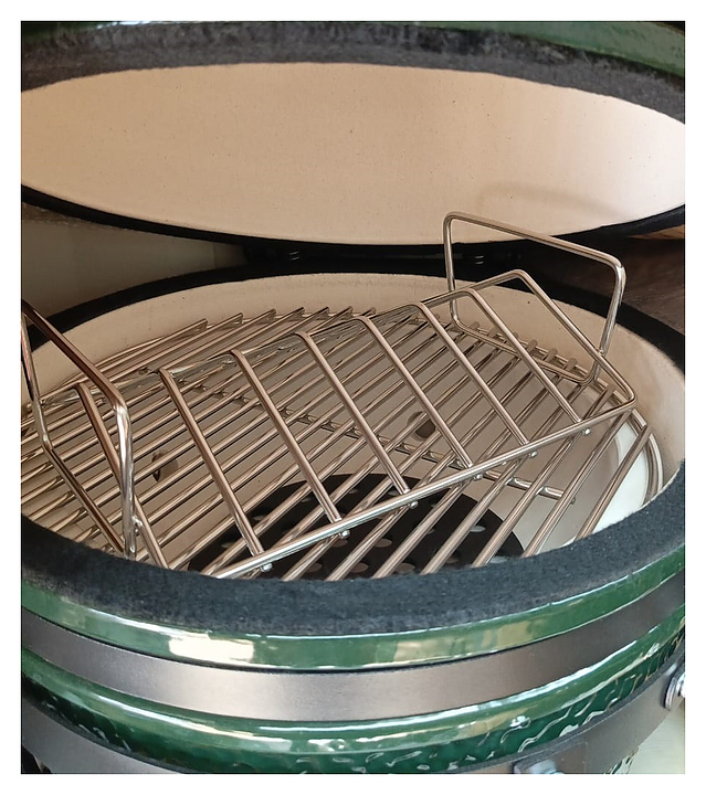 V-образная двусторонняя подставка используется совместно с керамическим грилем Green Kamado M для удобного запекания свиных и говяжьих ребрышек разного размера. Форма подставки позволяет воздуху постоянно циркулировать вокруг ребрышек, они запекаются равномерно и сохраняют свою форму во время готовки. Решетка имеет 2 положения: с одной стороны - для жарки рёбрышек, с другой - для жарки больших кусков мяса, утки или гуся.