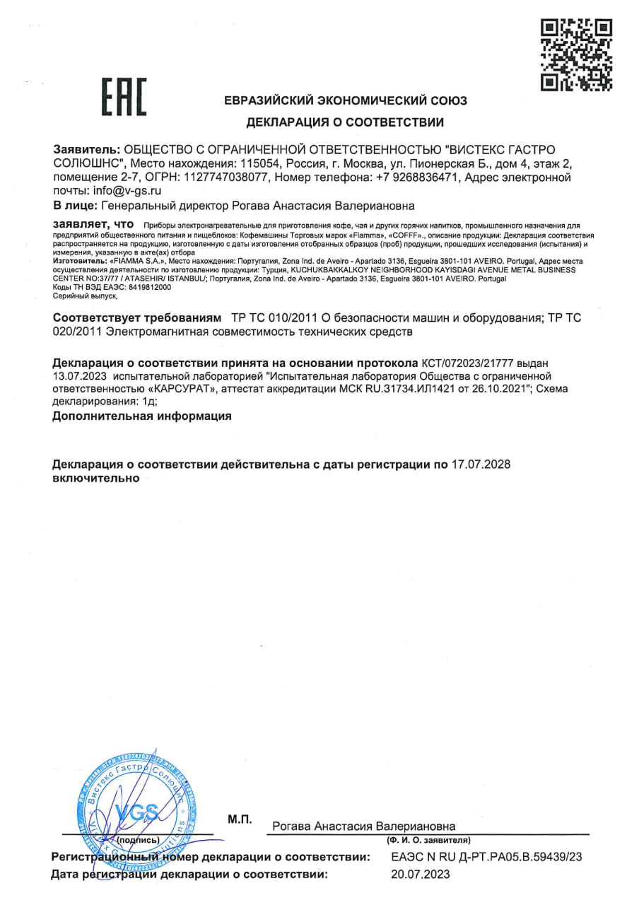 Оборудование португальской компании FIAMMA экспортируется более чем в 40 стран мира. Гордостью компании являются автоматические и полуавтоматические кофемашины, позволяющие приготовить вкуснейший кофе разных сортов. Также в ассортимент входят тостеры, грили, жарочные поверхности, мармиты и оборудование других типов. ENTERO - официальный партнёр