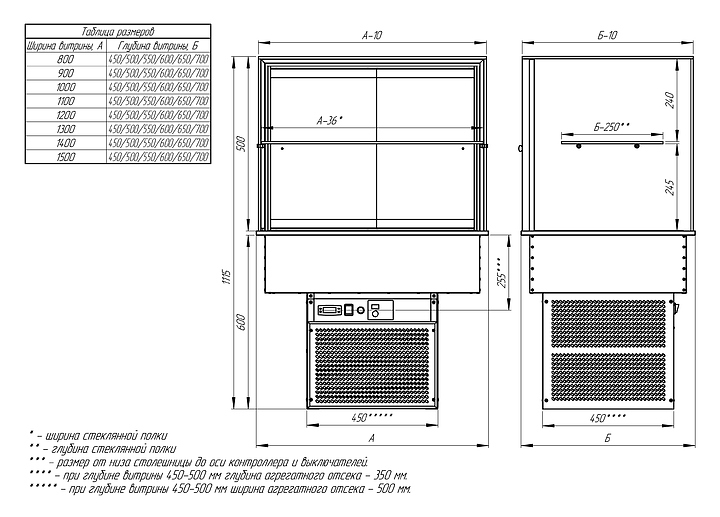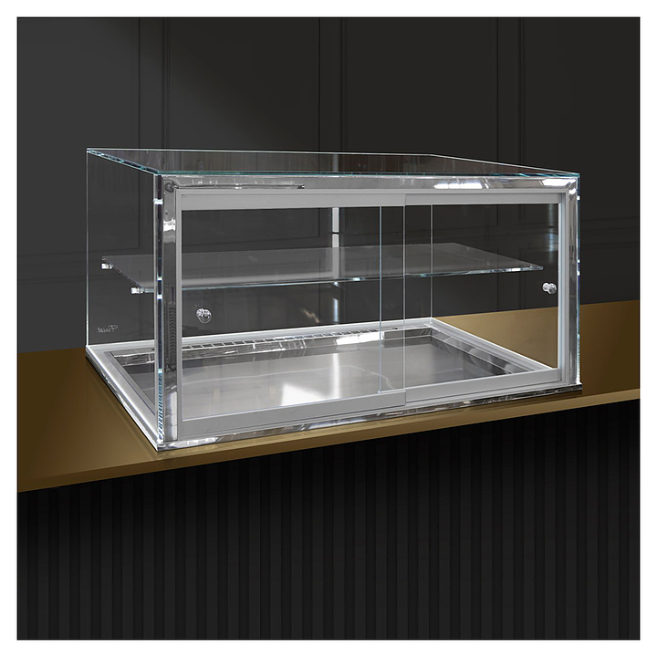 Встраиваемая горизонтальная витрина Finist Glassier G812-13/6/5 предназначена для кратковременного хранения и предпродажной демонстрации десертов, шоколадных изделий, конфет или пралине на предприятиях общественного питания и торговли. Модель оснащена 2 дверьми со стороны продавца, полкой, светодиодной подсветкой и может монтироваться в столешницу из любого материала. Купол витрины имеет большую площадь остекления, что помогает беспрепятственно разглядеть товар со всех сторон. Каркас и столешница выполнены из зеркальной нержавеющей стали, купол - из просветленного стекла, полка - из стекла и агрегатная часть - из крашеной стали. Особенности: