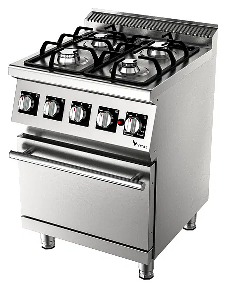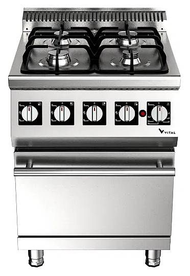 Газовая плита VITAL GKF6020 серии 600 предназначена для приготовления различных блюд из мяса, птицы, рыбы и овощей в наплитной посуде на предприятиях общественного питания и торговли. Модель оснащена 4 горелками, духовкой, устройством газовой безопасности и термопарой. Закругленные края плиты обеспечивают легкую чистку. Корпус выполнен из нержавеющей стали, съемная решетка и нижнее основание духовки - из чугуна. Особенности: