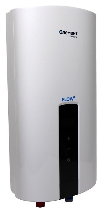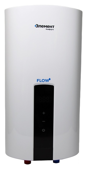 Электрический водонагреватель проточного типа Элемент Комфорта FLOW - 15 используется в местных системах водоснабжения для постоянного автономного обеспечения горячей водой одной или нескольких точек водоразбора таких как санитарные узлы, кухни в жилых и загородных частных домах, а также других бытовых, хозяйственных, коммерческих и промышленных объектах. Модель оснащена теплообменником с электронагревателем, резьбовыми штуцерами для подвода холодной и выхода горячей воды, кабелем питания и электронной панелью управления с сенсорными функциональными клавишами и светодиодным цифровым дисплеем. Вертикально ориентированный корпус выполнен из ударопрочного АБС-пластика белого цвета, трубка теплообменника – из нержавеющей стали, присоединительные штуцеры – из латуни. Комплектация: