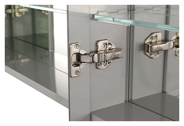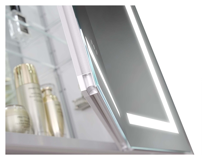 Зеркальный шкаф Aquatek AQ7124-MLC дополнит интерьер ванной комнаты. Благодаря подвесной конструкции модель занимает мало места, что экономит пространство и облегчает уборку, также возможен монтаж в нишу. Шкаф оснащен по периметру LED-подсветкой с сенсорным управлением, 3 распашными дверьми и 4 регулируемыми полками. Петли с доводчиком обеспечивают плавное и бесшумное открытие. Корпус и фасад выполнены из алюминия, полки - из стекла. В комплект поставки входят крепеж и подвесы. Особенности: