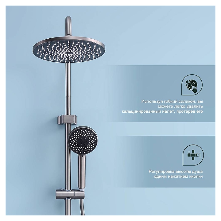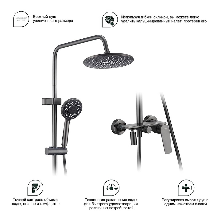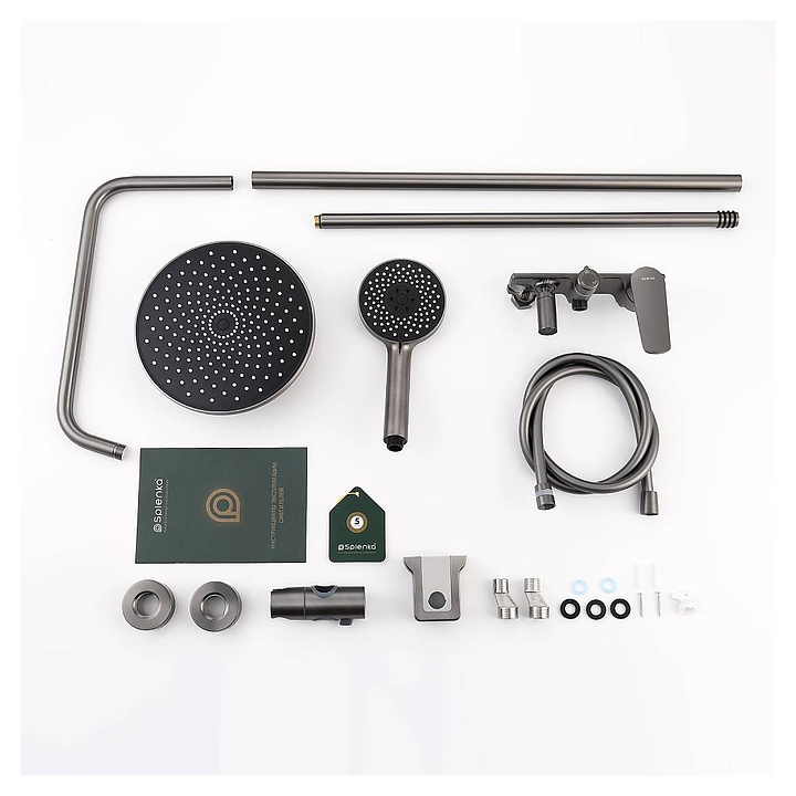 Душевая система Splenka S53.24.09 предназначена для подачи горячей и холодной воды в ванных помещениях. Модель оснащена круглыми верхним душем и ручной лейкой. Керамический картридж обеспечивает плавный ход рычага смесителя, контроль и точность при выборе напора и температуры воды. Аэратор создает мягкую струю без брызг. Изделие выполнено из латуни, шланг - из ПВХ. В комплект поставки входят верхний душ, душевая штанга с держателем лейки, ручной душ, смеситель и шланг. Особенности: