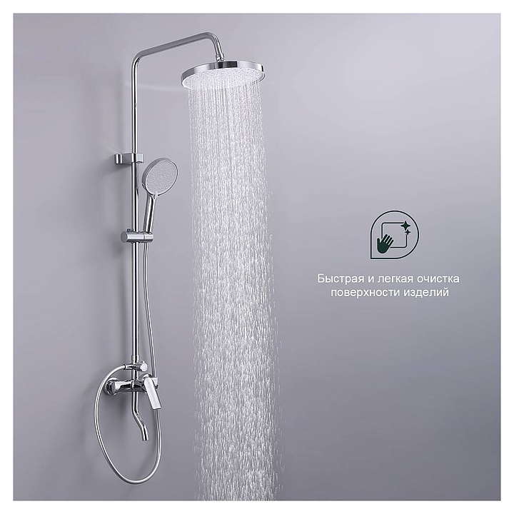 Душевая система Splenka S50.24 предназначена для подачи горячей и холодной воды в ванных помещениях. Модель оснащена круглыми верхним душем и ручной лейкой. Керамический картридж обеспечивает плавный ход рычага смесителя, контроль и точность при выборе напора и температуры воды. Аэратор создает мягкую струю без брызг. Изделие выполнено из латуни, лейки - из прочного ABS-пластика, шланг - из металла. В комплект поставки входят верхний душ, душевая штанга с держателем лейки, ручной душ, смеситель и шланг. Особенности: