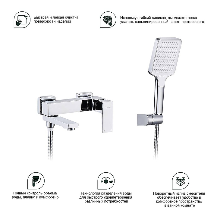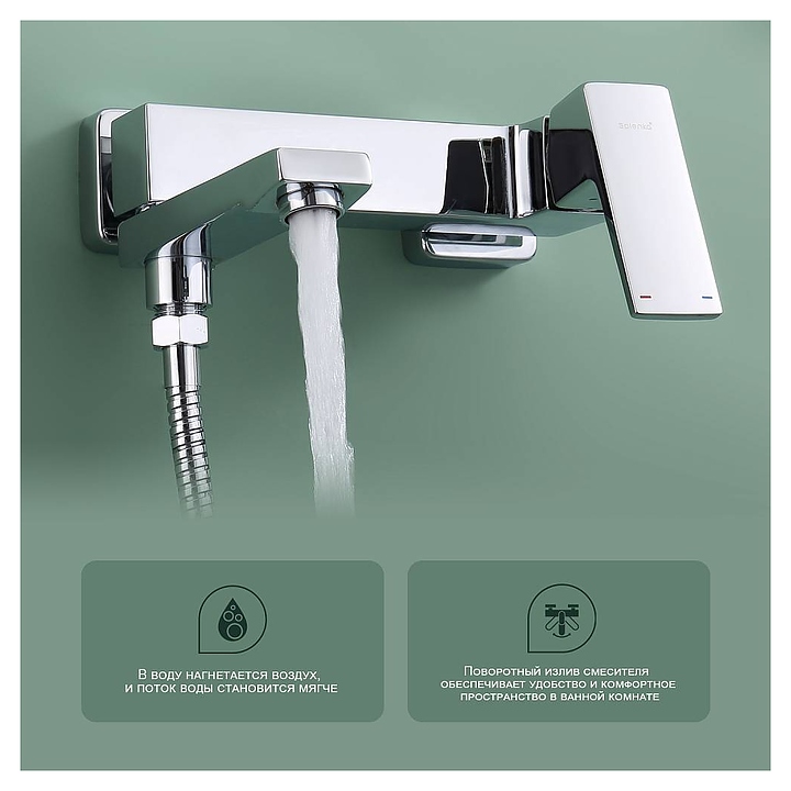 Смеситель для ванны и душа Splenka S01.30 предназначен для подачи горячей и холодной воды в ванных помещениях. Керамический картридж обеспечивает плавный ход рычага смесителя, контроль и точность при выборе напора и температуры воды. Аэратор экономит воду, насыщает воздухом и создает мягкую струю без брызг. Изделие выполнено из латуни, которая отличается прочностью, долговечностью и устойчивостью к перепадам температуры, шланг - из металла, пластины переключателя - из керамики. В комплект поставки входят смеситель, шланг, 3-режимная душевая лейка, держатель душевой лейки, эксцентрики и отражатели. Дополнительные характеристики: