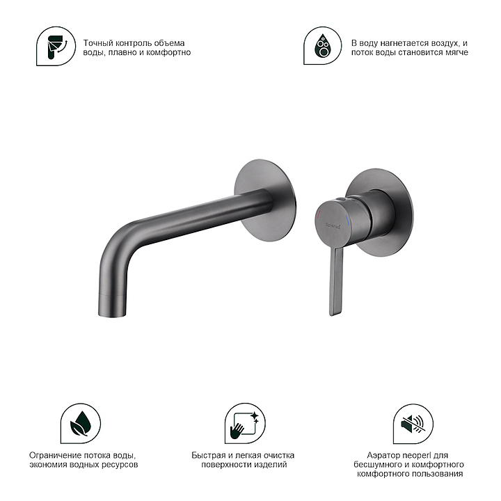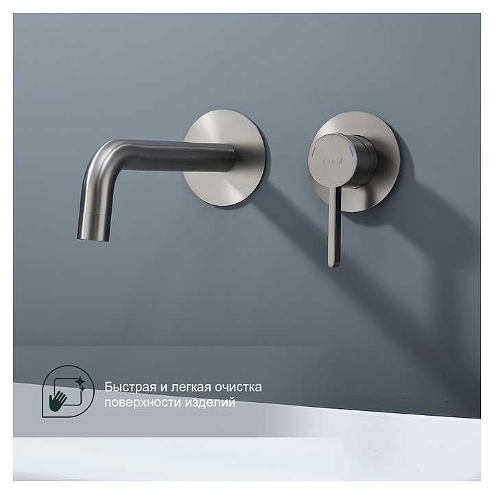 Смеситель для раковины Splenka S221.11.09 предназначен для подачи горячей и холодной воды в ванных и туалетных помещениях. Керамический картридж обеспечивает плавный ход рычага смесителя, контроль и точность при выборе напора и температуры воды. Аэратор создает мягкую струю без брызг и снижает уровень шума. Изделие выполнено из нержавеющей стали, которая отличается прочностью и долговечностью. В комплект поставки входят излив, декоративные розетки и внутренняя часть. Особенности: