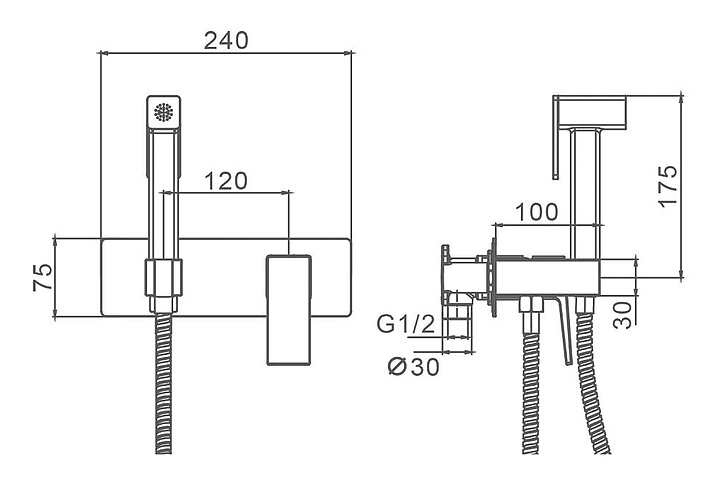 Гигиенический душ Splenka S01.52 предназначен для подачи горячей и холодной воды в туалетных комнатах. Керамический картридж обеспечивает плавный ход рычага смесителя, контроль и точность при выборе напора и температуры воды. Корпус выполнен из высококачественной латуни, отличающейся прочностью, долговечностью и устойчивостью к перепадам температуры, лейка - из ABS пластика, шланг - из металла. В комплект поставки входят внутренняя часть, 1-режимная лейка и шланг. Особенности: