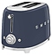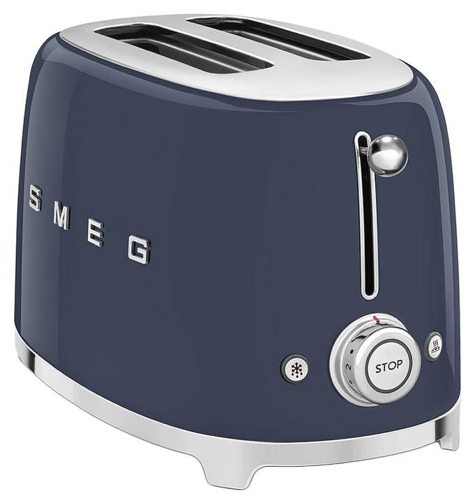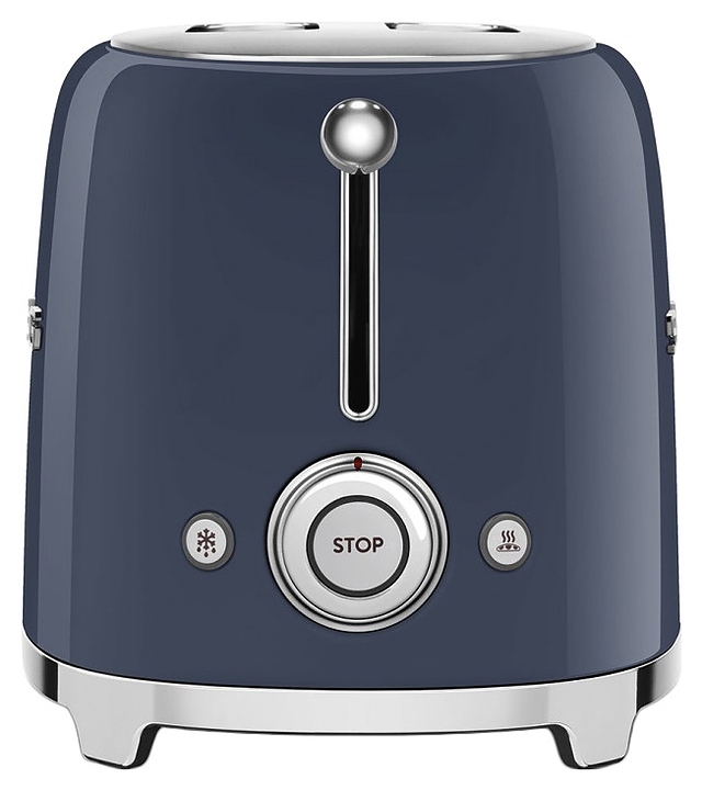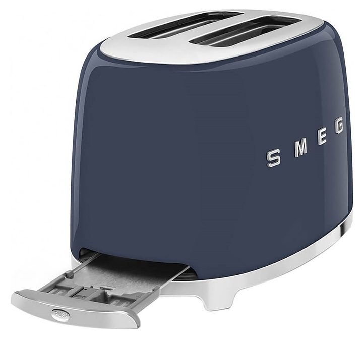 Тостер SMEG TSF01NBEU используется в офисах, гостиницах, домашних условиях для обжаривания ломтиков хлеба различных сортов. Модель оснащена 2 слотами для тостов, кабелем питания с вилкой, электромеханической панелью управления с рычагом для загрузки хлеба, поворотно-нажимным переключателем и функциональными нажимными кнопками. Корпус обтекаемой формы выполнен из нержавеющей стали с внешним глянцевым покрытием темно-синего оттенка Navy Blue и нержавеющей стали с серебристой поверхностью, основание прибора и накладные литеры логотипа – из пластика с покрытием оттенка полированный хром, поддон для крошек – из нержавеющей стали, рычаг – из нержавеющей стали, кнопки и переключатель – из пластика, упаковка – картонная коробка. В комплект поставки входят инструкция по эксплуатации, гарантийный талон и заводская упаковка. Особенности: