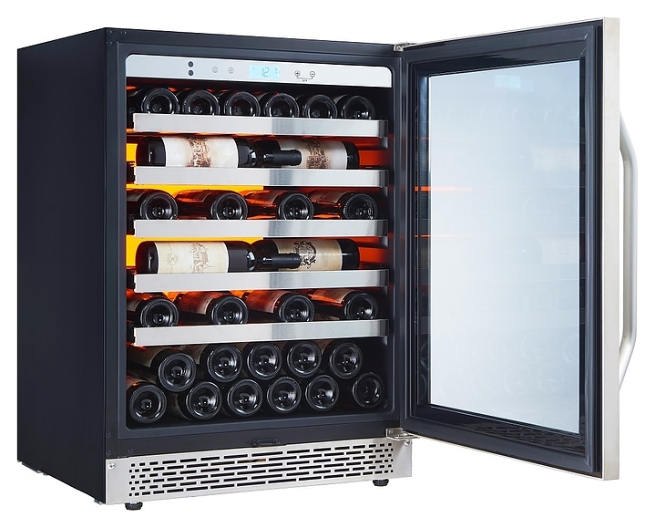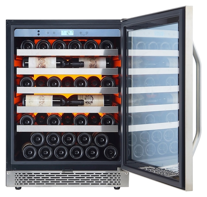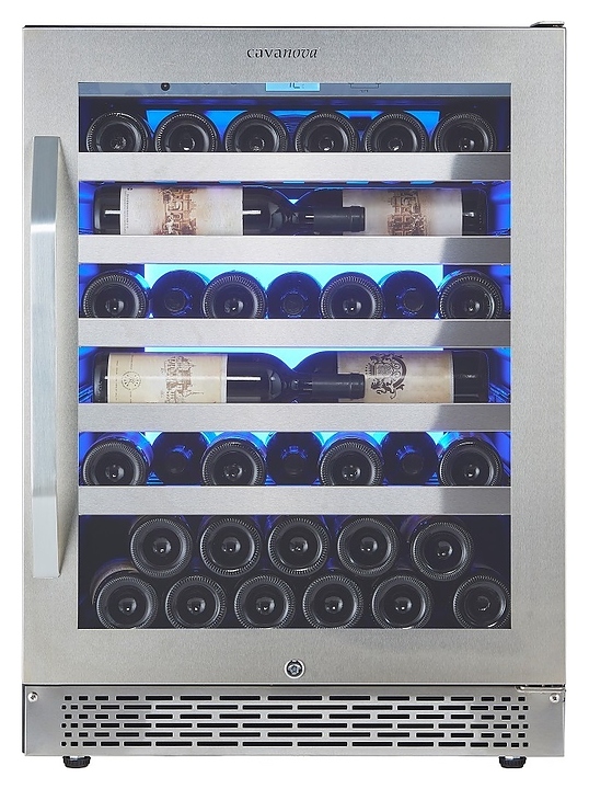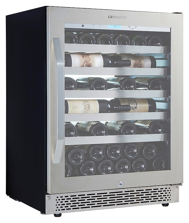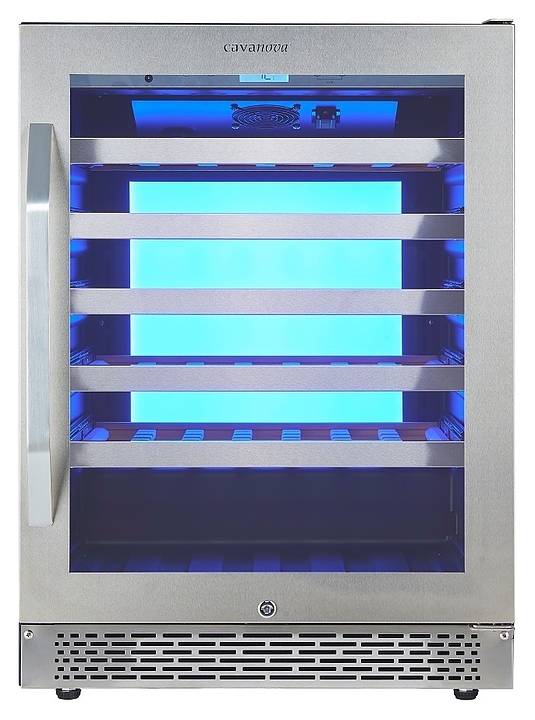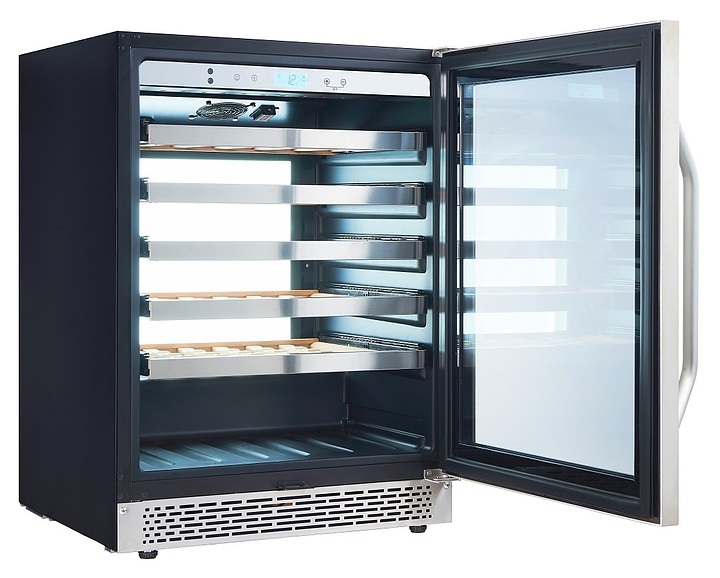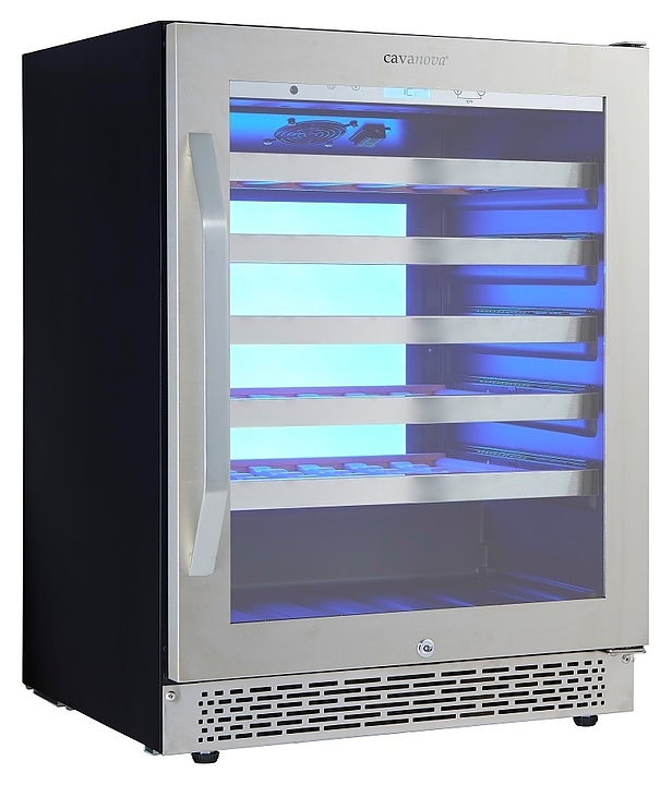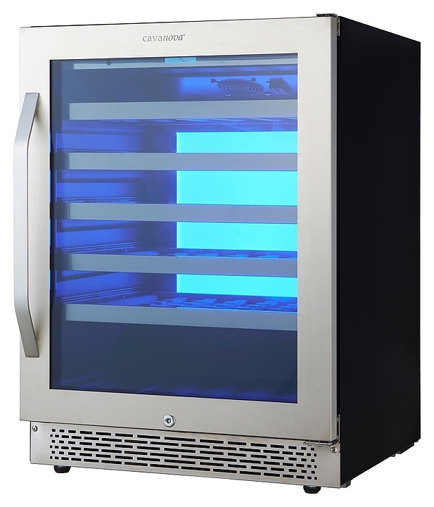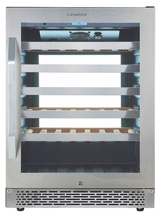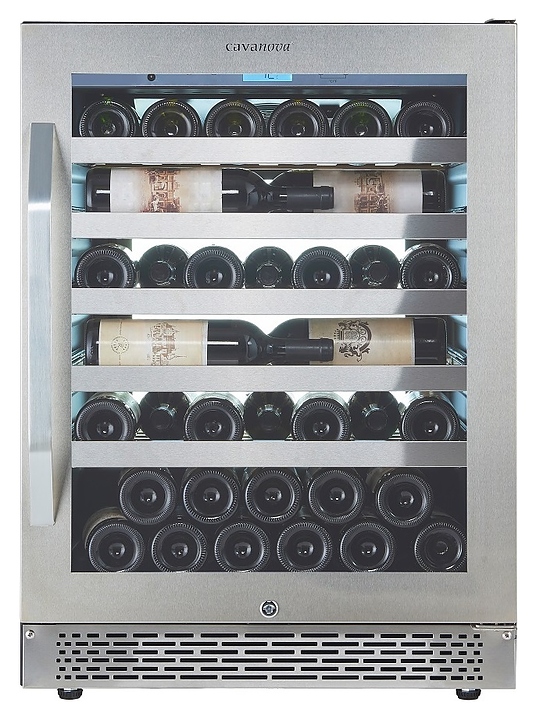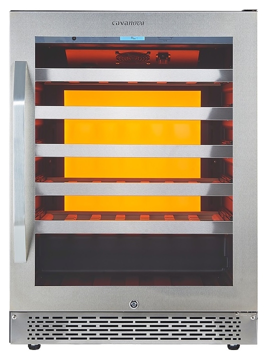 Винный шкаф Cavanova CV045-1TL предназначен для хранения при оптимальных условиях и демонстрации бутилированного вина различных сортов в барах, ресторанах, специализированных магазинах, подсобных складских помещениях, а также в домашних условиях. Модель оснащена монотемпературной холодильной камерой, правосторонней распашной дверью с длинной вертикальной рукояткой, прозрачным обзорным остеклением, цокольной решеткой и расположенной за дверью в верхней части фронта сенсорной панелью управления с жидкокристаллическим дисплеем индикации. Корпус выполнен из металла с антикоррозийным покрытием черного цвета, фронт рамы двери и рукоятка с поверхностью серебристого оттенка, полки – из массива древесины. В комплект поставки входят 5 полок с направляющими для размещения бутылок, комплект ключей к замку, инструкция по эксплуатации и гарантийный талон. Особенности: