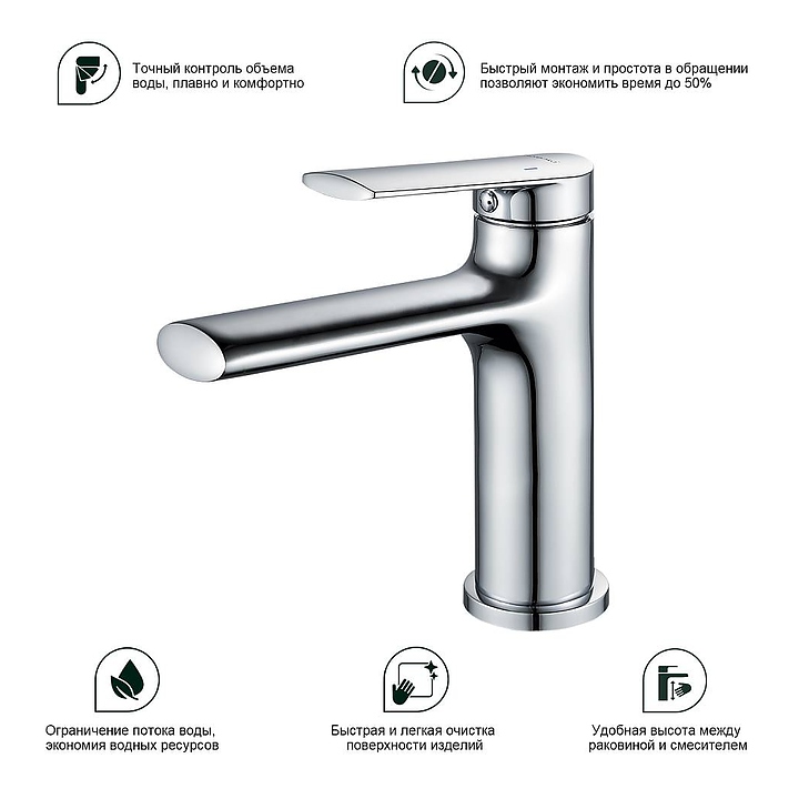 Смеситель для раковины Splenka S50.10 предназначен для подачи горячей и холодной воды в ванных и туалетных помещениях. Керамический картридж обеспечивает плавный ход рычага смесителя, контроль и точность при выборе напора и температуры воды. Аэратор создает мягкую струю без брызг и снижает уровень шума. Изделие выполнено из латуни, которая отличается прочностью и долговечностью. В комплект поставки входит подводка. Особенности: