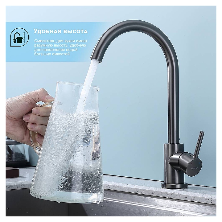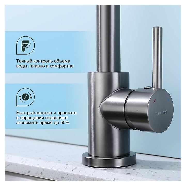 Смеситель Splenka S201.40.09 предназначен для подачи горячей и холодной воды в кухонных помещениях. Модель оснащена керамическим картриджем, обеспечивающим плавный ход рычага смесителя, контроль и точность при выборе напора и температуры воды. Аэратор создает мягкую струю без брызг и снижает шум. Изделие выполнено из нержавеющей стали, которая отличается прочностью и долговечностью. В комплект поставки входят подводка и крепления. Особенности:
