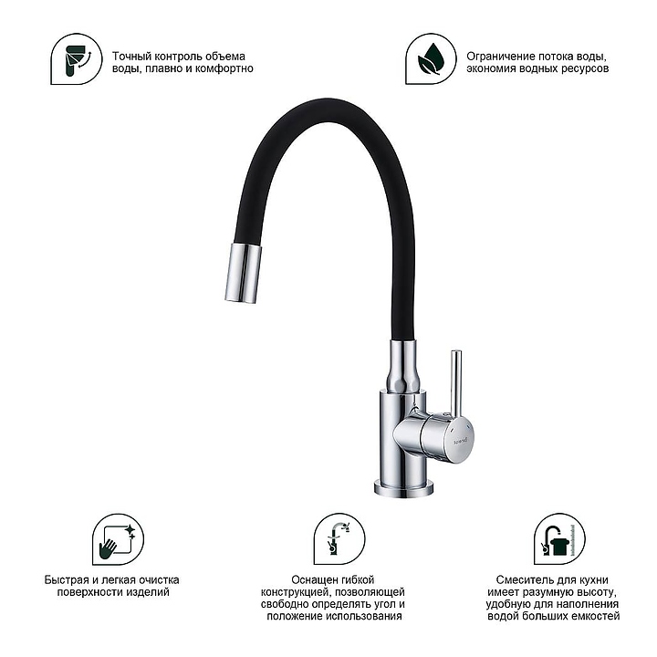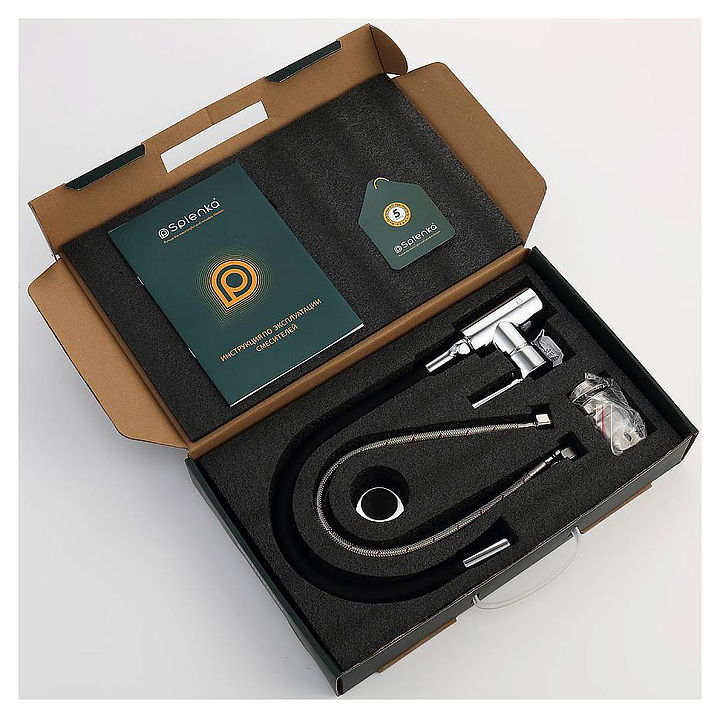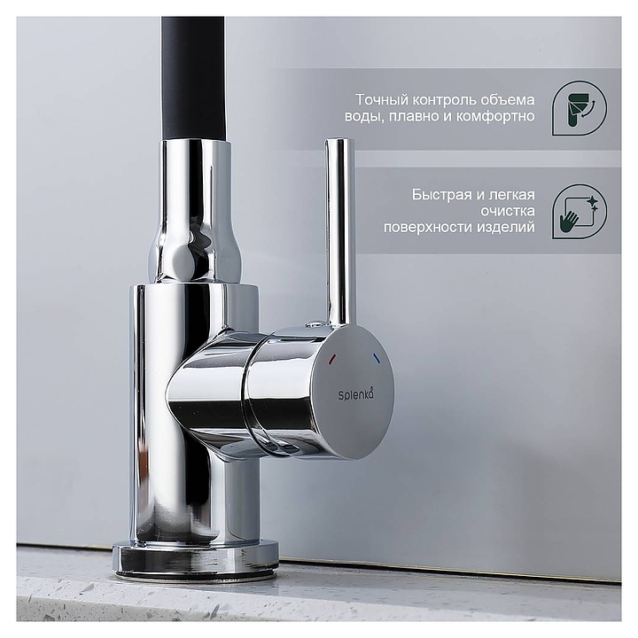 Смеситель Splenka S201.4406 предназначен для подачи горячей и холодной воды в кухонных помещениях. Модель оснащена гибким изливом и керамическим картриджем, обеспечивающим плавный ход рычага смесителя, контроль и точность при выборе напора и температуры воды. Аэратор создает мягкую струю без брызг и снижает шум. Корпус выполнен из нержавеющей стали, которая отличается прочностью и долговечностью. В комплект поставки входят подводка и крепления. Особенности: