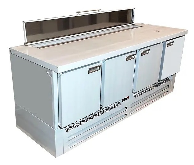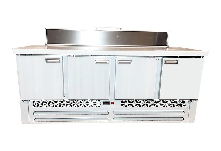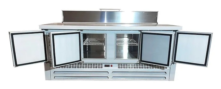 Холодильный стол для пиццы CLSY LUXE Saladetta 1,970 предназначен для обработки ингредиентов в процессе приготовления блюд, а также кратковременного хранения скоропортящихся продуктов и напитков на предприятиях общественного питания и торговли. Модель оснащена салат-баром (саладетта), который можно использовать для приготовления пиццы, шаурмы, салатов и др., а также удобной и простой в использовании электронной панелью управления и тремя распашными дверями с доводчиками. Корпус и столешница выполнены из нержавеющей стали марки AISI 430. Особенности: