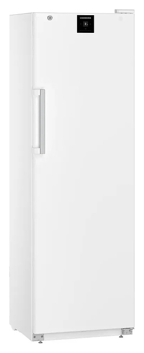 Холодильный шкаф Liebherr FRFvg 4001 серии Performance предназначен для охлаждения и хранения пищевых продуктов и напитков на предприятиях общественного питания и торговли. Модель оснащена холодильной камерой c правосторонней глухой распашной дверью с короткой вертикальной рукояткой, кабелем питания с вилкой, 4 опорами, расположенными в верхней части фронта за дверью и на фасаде двери сенсорными панелями управления с дисплеями индикации. Фасад двери и боковины выполнены из стали с лакированным антикоррозийным покрытием белого цвета, внутренняя облицовка камеры – из белого полистирола для профессионального применения, рукоятка – из алюминия, опоры – из оцинкованной стали, полки – из металла с полимерным покрытием, упаковка – из гофрокартона, полимерной пленки и полистирола.