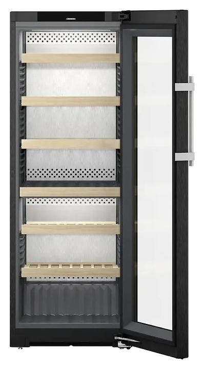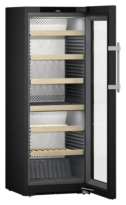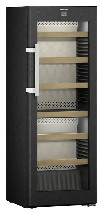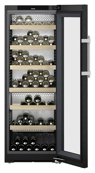 Винный шкаф Liebherr WPbsi 5052 серии Vinidor предназначен для охлаждения и хранения при оптимальных условиях бутилированного вина различных сортов в барах, ресторанах, специализированных магазинах, подсобных складских помещениях, а также домашних условиях. Модель оснащена холодильной камерой с 2 независимыми температурными зонами, правосторонней распашной дверью на перенавешиваемых петлях с обзорным остеклением, кабелем питания с евровилкой, расположенным в верхней части фасада двери сенсорным цветным дисплеем управления и индикации. Фасад рамы двери и боковины выполнены из легированной стали с устойчивой к царапинам и отпечаткам пальцев сатинированной вертикальными штрихами поверхностью BlackSteel оттенка черная сталь, сухая задняя панель – из нержавеющей стали с серебристой сатинированной поверхностью SmartSteel, рукоятка – из алюминия с серебристой поверхностью, полки – из массива буковой древесины, упаковка – из гофрокартона, полимерной пленки и полистирола.