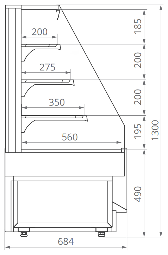 Кондитерская витрина Chilz VETE II KUB OF 90 предназначена для демонстрации, охлаждения и краткосрочного хранения кондитерских изделий, закусок и десертов на предприятиях общественного питания и торговли. Модель оснащена 4 экспозиционными вертикальными полками и электронным контроллером. Особенности: