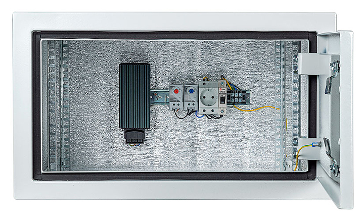 Телекоммуникационный шкаф MASTERMANN 7 УТ-С(6U) 19 используется на предприятиях пищевой промышленности, общественного питания и торговли для установки сетевого и телекоммуникационного оборудования. Модель оснащена системой автоматического поддержания заданной температуры и относительной влажности, обеспечивающей безопасную работу, а также блоком управления KTS 011 для защиты от «холодного» пуска, теплообменников или для выключения сигнальных датчиков при превышении температуры. Корпус и дверь выполнены из листовой стали, покрытой порошковой полиэфирной краской, утеплитель - из порилекса НПЭ. Особенности: