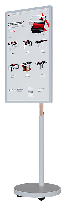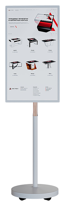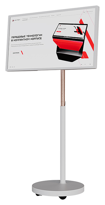 Интерактивная панель AxeTech Slim 32" используется для проведения уроков в школах, лекций в образовательных учреждениях, конференций, бизнес-совещаний, а также для отображения информации в выставочных комплексах и музеях. Модель отличается минималистичным дизайном и тонким дисплеем, который можно расположить горизонтально и вертикально, что позволяют вписать устройство в любое пространство. Встроенные колесики гарантируют легкое перемещение. Корпус выполнен из стали. В комплект поставки входит провод питания. Особенности: