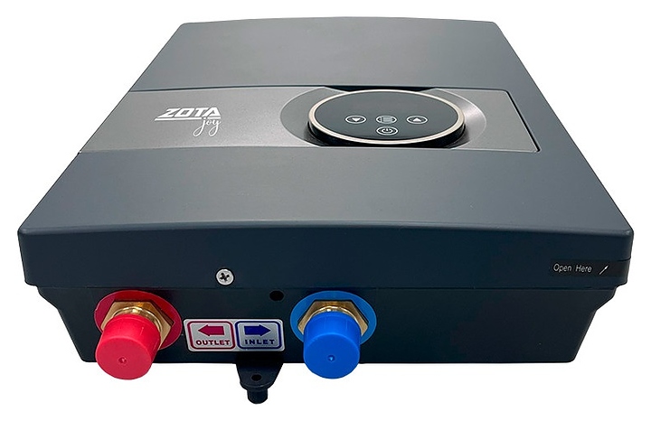Электрический водонагреватель проточного типа Zota Joy 12 используется в местных системах водоснабжения для постоянного автономного обеспечения горячей водой одной или нескольких точек водоразбора таких как санитарные узлы, кухни в жилых и загородных частных домах, на небольших коммерческих предприятиях, а также других бытовых и хозяйственных объектах. Модель оснащена теплообменником с электронагревателем, резьбовыми штуцерами для подвода холодной и выхода горячей воды, кабелем питания и панелью управления с сенсорными функциональными клавишами и светодиодным цифровым дисплеем. Вертикально ориентированный корпус прибора выполнен из ударопрочного АБС-пластика серого оттенка с серебристой вставкой, литой корпус теплообменника – из алюминия, трубка теплообменника – из нержавеющей стали, присоединительные штуцеры – из латуни. Комплектация: