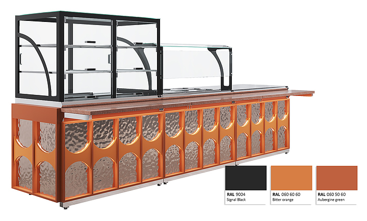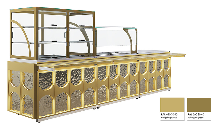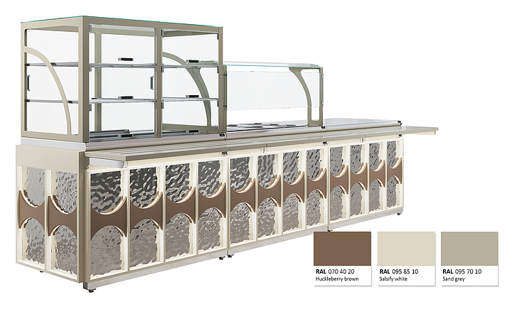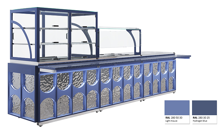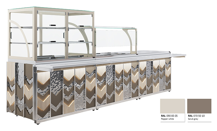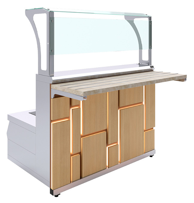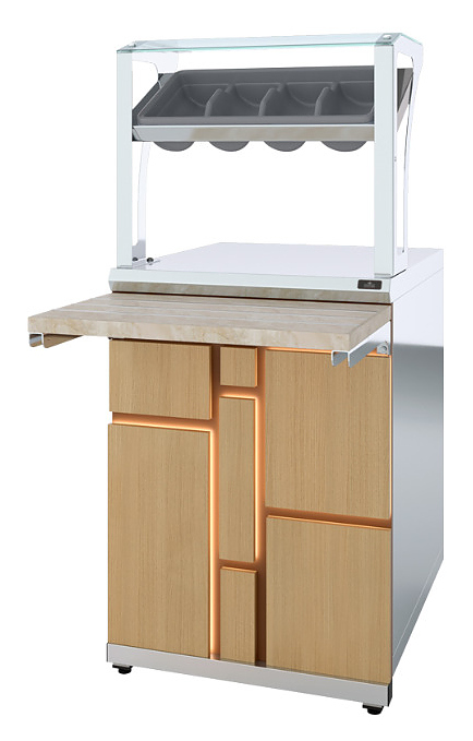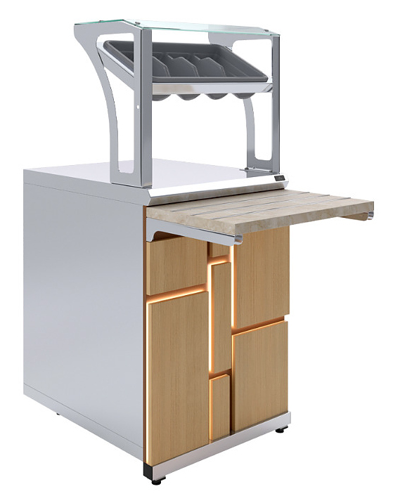 Столешница под подносы для линии раздачи Luxstahl LG Hi-Macs серия S и G из искусственного камня используется в качестве направляющей в составе линии раздачи на предприятиях общественного питания и торговли. Особенности:
