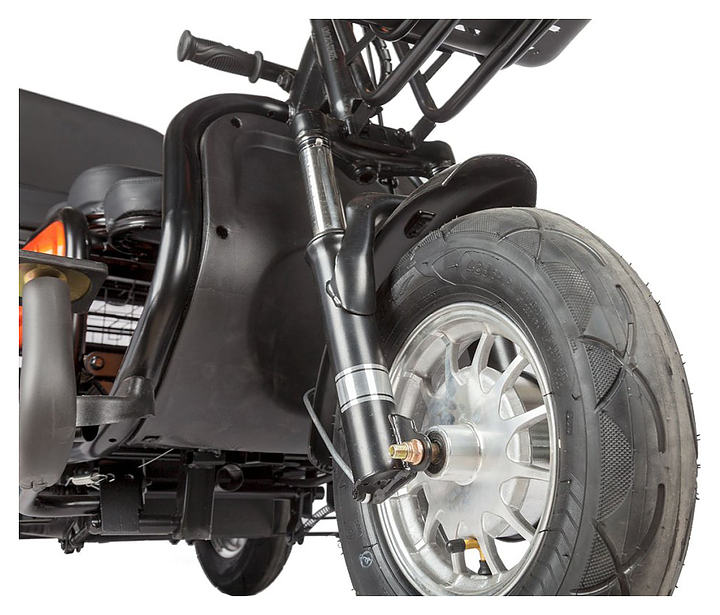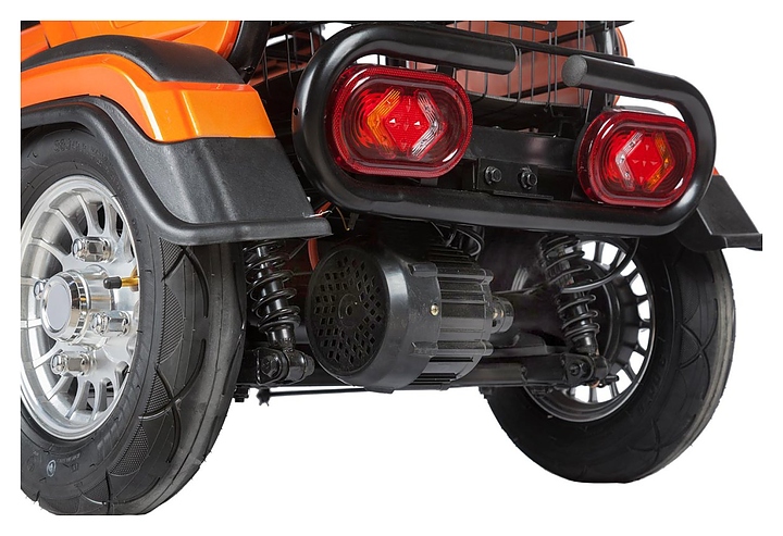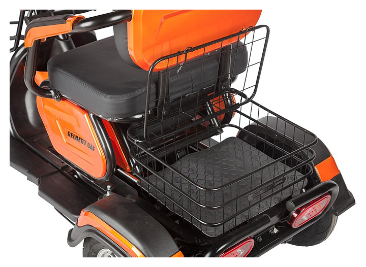 Трицикл Rutrike Gelbert Caf используется для комфортного передвижения по городским улицам в сухую погоду, а также перевозки пассажиров и бытовых грузов. Модель оснащена яркой светодиодной фарой, поворотниками, корзинами на руле и под сиденьем водителя, большим LCD-дисплеем на приборной панели, ручками для ребенка на передних дугах, а также дополнительными сиденьями, которые можно сложить и открыть доступ к вместительной корзине. Передняя вилка и задние пружинные амортизаторы гарантируют комфортную езду. Корзины выполнены из металла. В комплект поставки входят 2 брелока. Аккумуляторные батареи и зарядное устройство в комплект поставки не входят. Особенности: