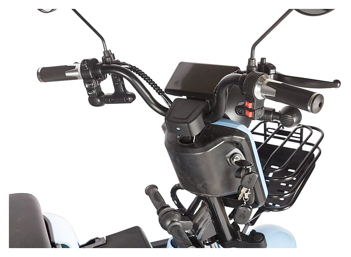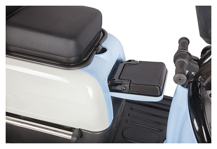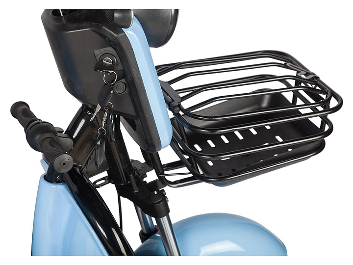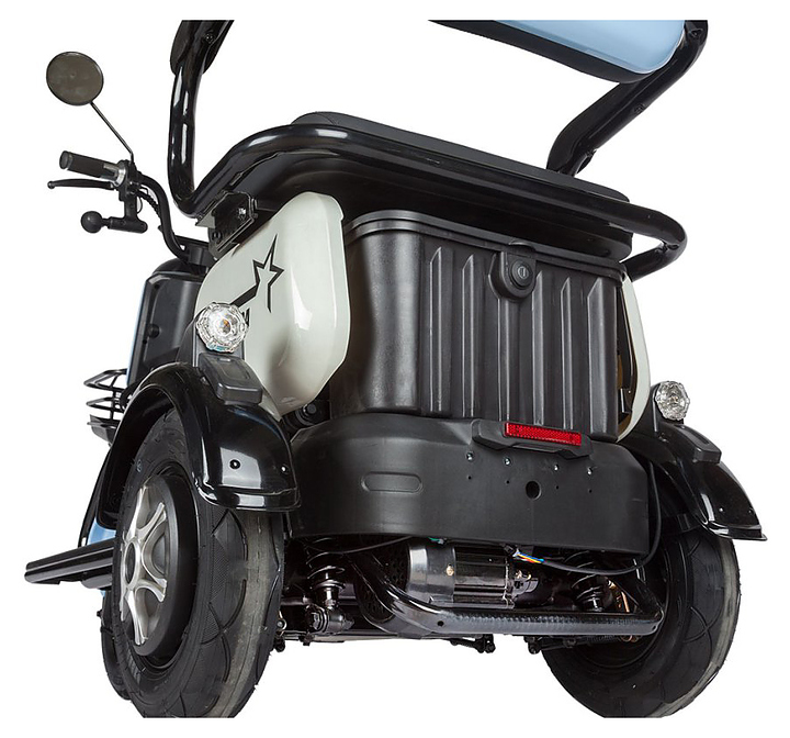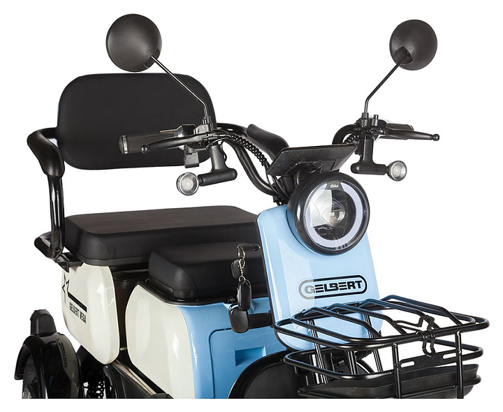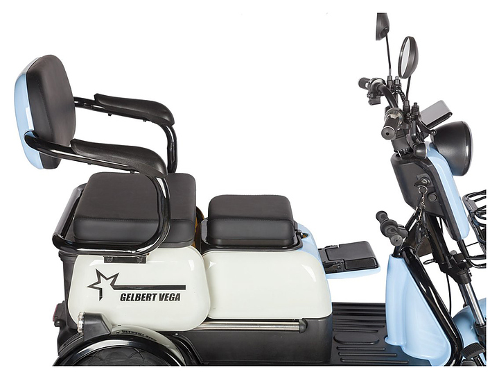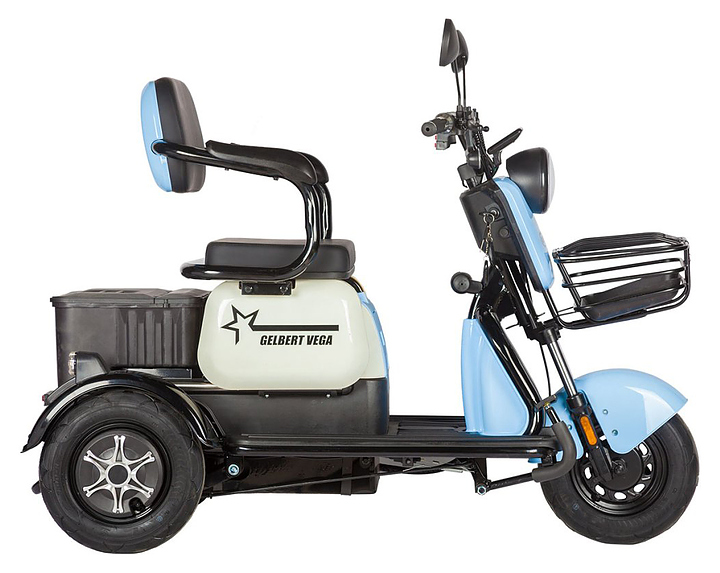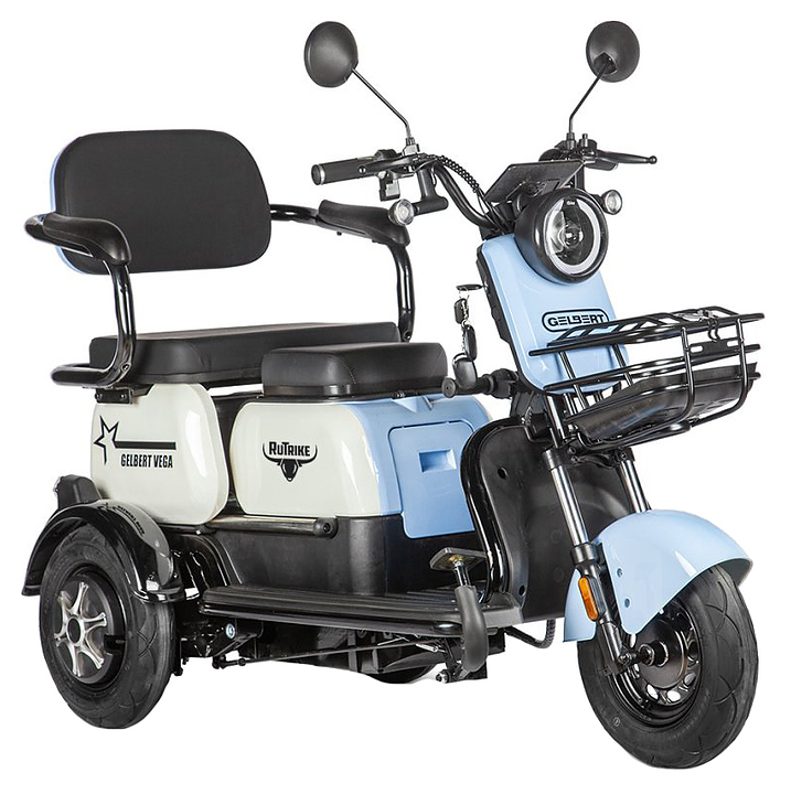 Трицикл Rutrike Gelbert Vega используется для комфортного передвижения по городским улицам в сухую погоду, а также перевозки пассажиров и бытовых грузов. Модель оснащена корзиной на руле, багажным отсеком под одним из пассажирских сидений и откидывающимся сиденьем для ребенка. Передний и задний барабанные тормоза обеспечивают надежное торможение. Устойчивая 3-колесная конструкция гарантирует комфорт во время поездки даже на длинные расстояния. Аккумуляторные батареи и зарядное устройство в комплект поставки не входят. Дополнительные характеристики: