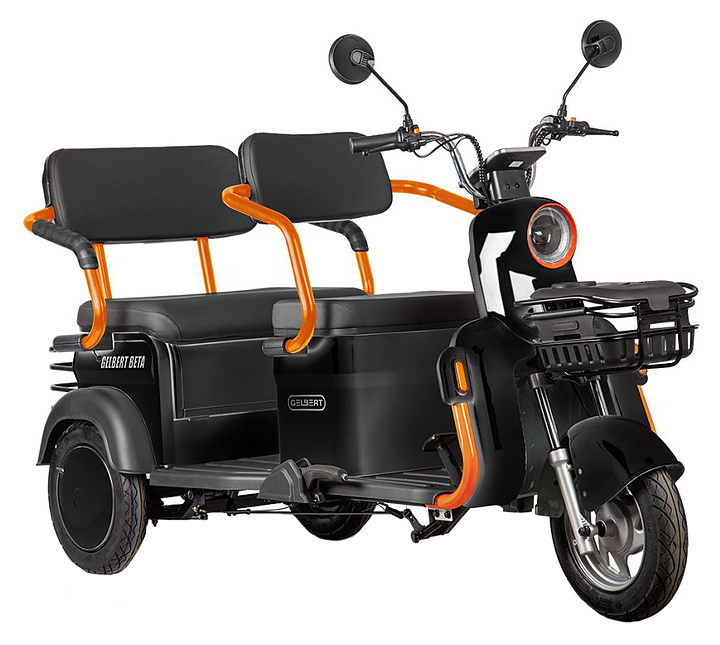 Трицикл Rutrike Gelbert Beta предназначен для комфортного передвижения по городским улицам и загородным дорогам. Модель оснащена корзинами на руле и сзади, задним приводом и барабанными тормозами. Заднее сиденье откидывается и обеспечивает доступ к вместительному багажнику. Аккумуляторные батареи и зарядное устройство в комплект поставки не входят. Дополнительные характеристики: