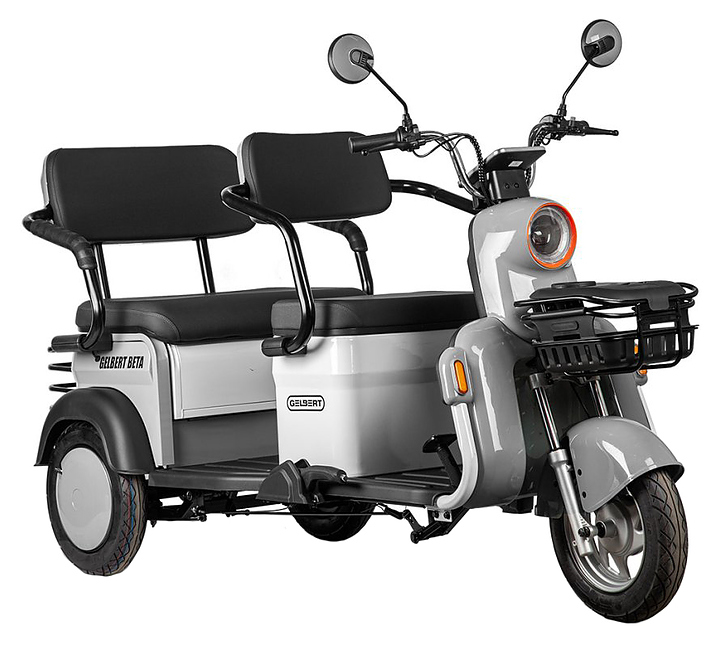 Трицикл Rutrike Gelbert Beta предназначен для комфортного передвижения по городским улицам и загородным дорогам. Модель оснащена корзинами на руле и сзади, задним приводом и барабанными тормозами. Заднее сиденье откидывается и обеспечивает доступ к вместительному багажнику. Аккумуляторные батареи и зарядное устройство в комплект поставки не входят. Дополнительные характеристики: