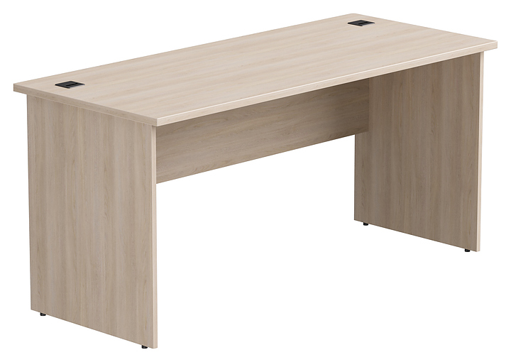 Офисный стол Everprof EVO 1580х670х755 мм используется для организации рабочего пространства в офисных помещениях. Коллекция отличается элегантным лаконичным дизайном для гармоничной интеграции в интерьеры, оформленные в стиле сканди, минимализм или современная классика. Модель оснащена столешницей прямоугольной формы и 2 опорами в виде глухих боковин с подпятниками, конструкция усилена экраном, расположенным между боковинами с тыльной стороны. Столешница, боковины и экран выполнены из высококачественной ламинированной древесно-стружечной плиты (ЛДСП) с поверхностью оттенка дуб соната. Дополнительные характеристики: