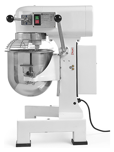 Планетарный миксер HENDI Kitchen Line 222836 используется на предприятиях пищевой промышленности, общественного питания и торговли для замеса теста, взбивания кремов, муссов, а также приготовления пюре и соусов. Модель оснащена электромеханическим управлением и защитой дежи. Подъемная головка опускается и поднимается при помощи рычага, предохранитель включения миксера при поднятой головке или неправильно установленной деже гарантирует безопасную эксплуатацию. Корпус выполнен из стали с эмалевым покрытием, дежа - из нержавеющей стали. В комлект поставки входят венчик, насадка для смешивания и крюк для теста. Дополнительные характеристики: