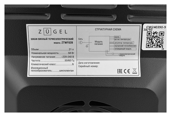 Винный шкаф Zugel ZTWF82B черный