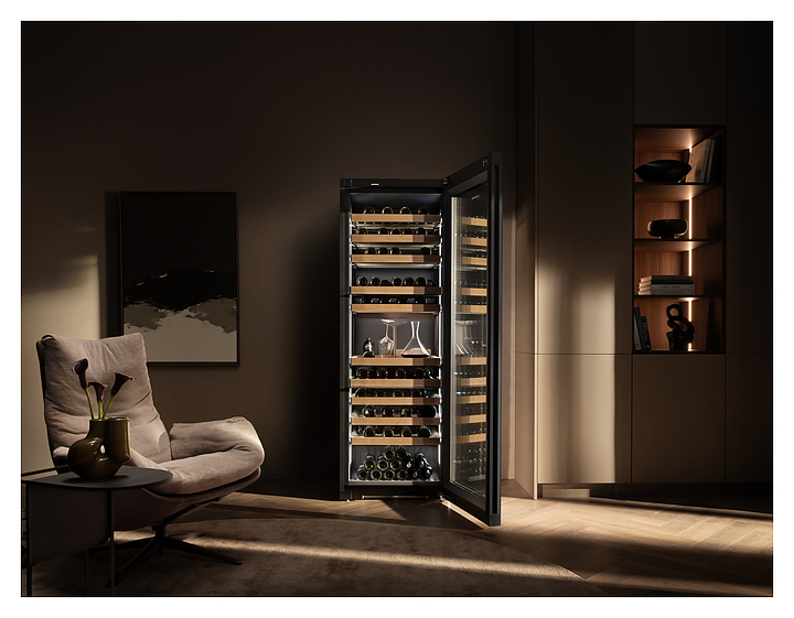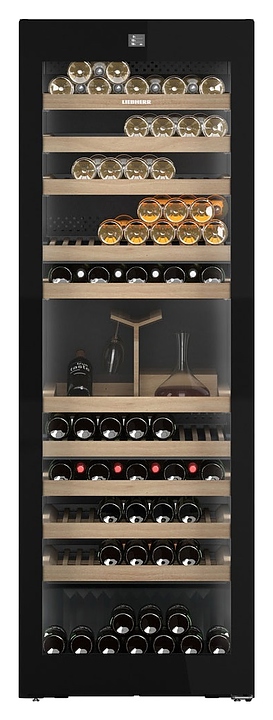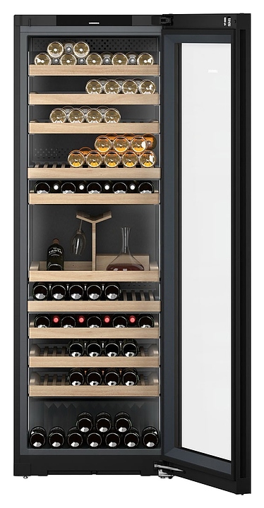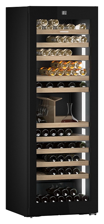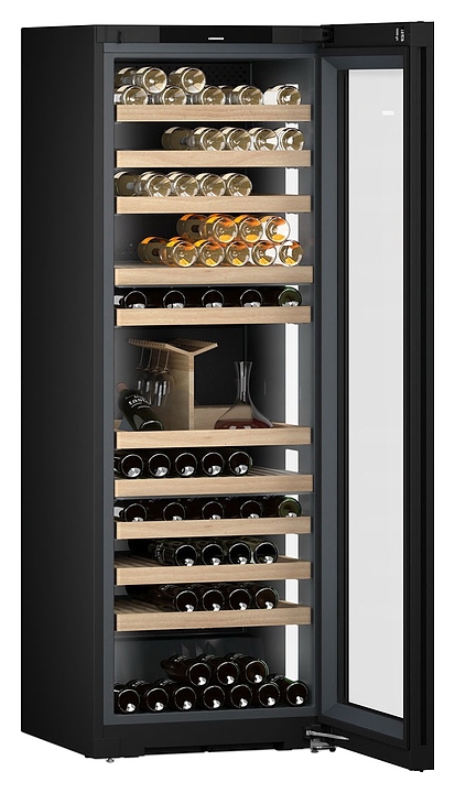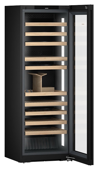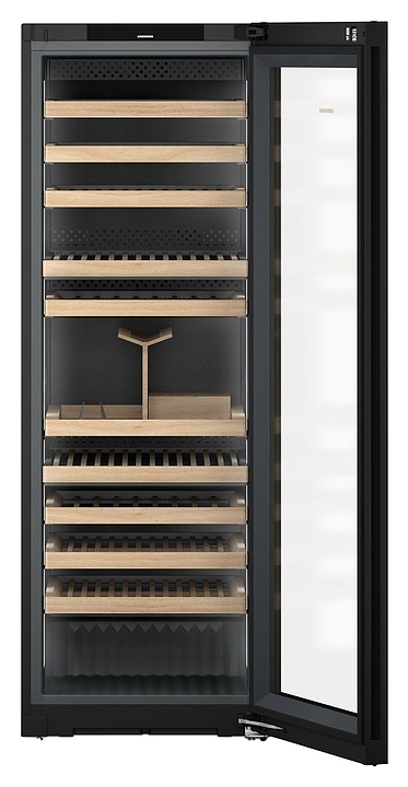 Винный шкаф Liebherr WPgbi 7483 серии Vinidor Selection предназначен для охлаждения и хранения при оптимальных условиях бутилированного вина различных сортов в барах, ресторанах, специализированных магазинах, подсобных складских помещениях, а также домашних условиях. Модель оснащена холодильной камерой с 3 независимыми температурными зонами, правосторонней распашной дверью на перенавешиваемых петлях с обзорным остеклением, кабелем питания с евровилкой, расположенным в верхней части фасада двери сенсорным цветным дисплеем управления и индикации. Боковины и сухая задняя панель выполнены из легированной стали с устойчивой к царапинам и отпечаткам пальцев сатинированной вертикальными штрихами поверхностью BlackSteel оттенка черная сталь, дверь с фасадом GlassBlack с полным фронтальным остеклением без винтового крепежа, полки и доска сомелье – из массива буковой древесины, упаковка – из гофрокартона, полимерной пленки и полистирола.