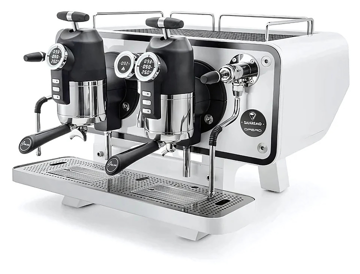 Кофемашина Sanremo OPERA 2GR высокие гр., стальная-белая, внешняя помпа