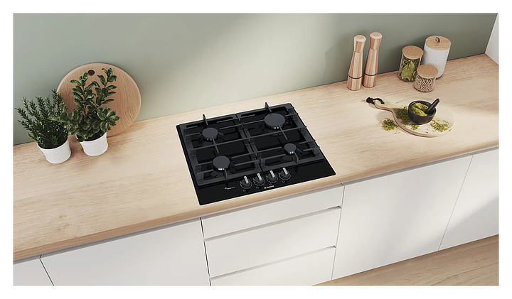 Газовая варочная панель Bosch PCP6A6B90R серии 6 предназначена для приготовления большого ассортимента блюд в наплитной посуде в домашних условиях. Модель оснащена 4 конфорками различной мощности, поворотными переключателями и прямым краем. Функция FlameSelect обеспечивает точную регулировку пламени на 9 различных ступенях. Электромагнитная защита от утечки газа и автоматический электроподжиг гарантируют комфортную и безопасную эксплуатацию. Рабочая поверхность выполнена из эмалированной стали, решетка - из чугуна.