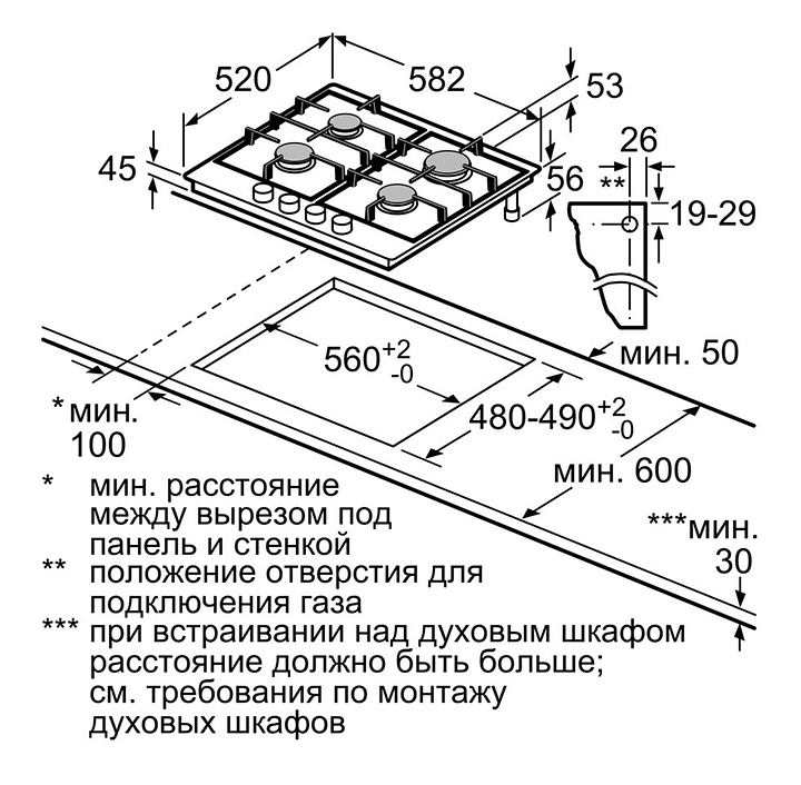 • Габариты ниши для встраивания: 560-562x480-492 мм
