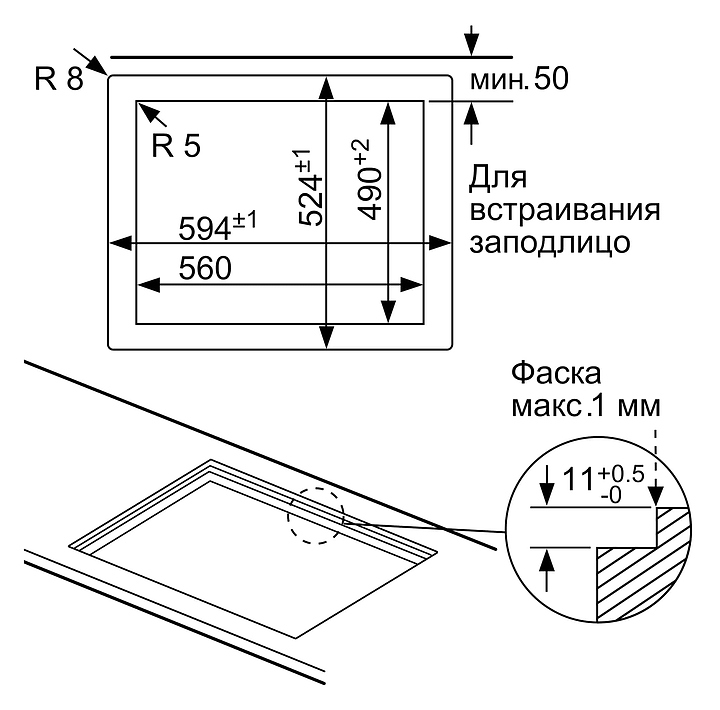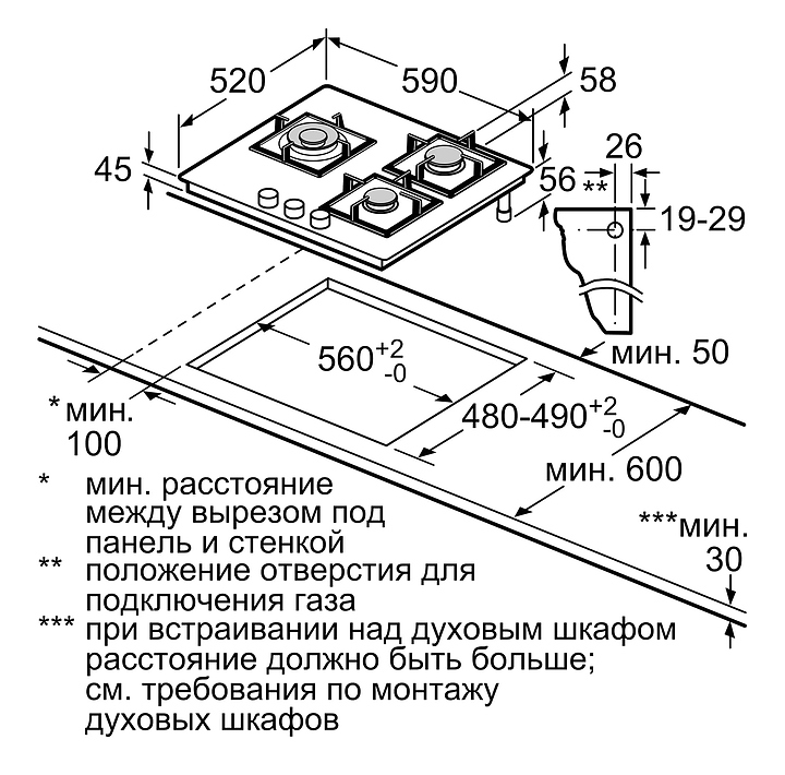 • Габариты ниши для встраивания: 560-562x480-492 мм