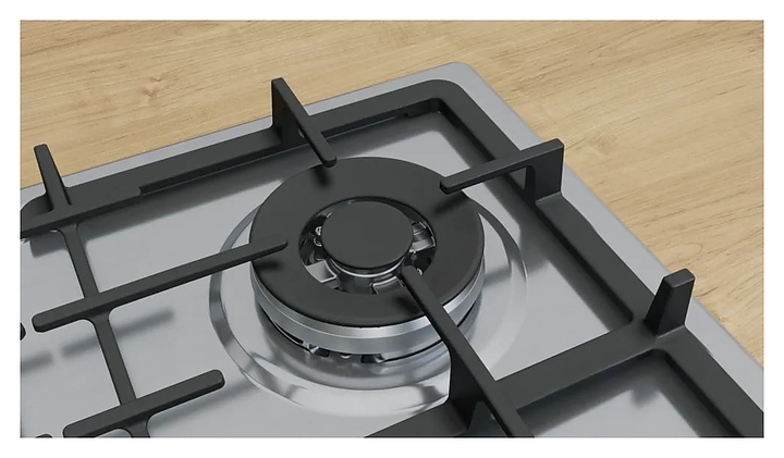 Газовая варочная панель Bosch PGH6B5K90R серии 2 предназначена для приготовления большого ассортимента блюд в наплитной посуде в домашних условиях. Модель оснащена 4 конфорками различной мощности, WOK-конфоркой с 2 кольцами пламени и поворотными переключателями. Термоэлектрическая защита от утечки газа и автоматический электроподжиг гарантируют комфортную и безопасную эксплуатацию. Рабочая поверхность выполнена из нержавеющей стали, решетки - из чугуна.