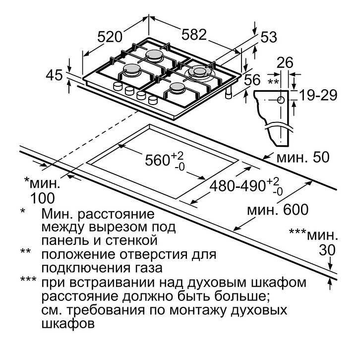 • Габариты ниши для встраивания: 560-562x480-490 мм