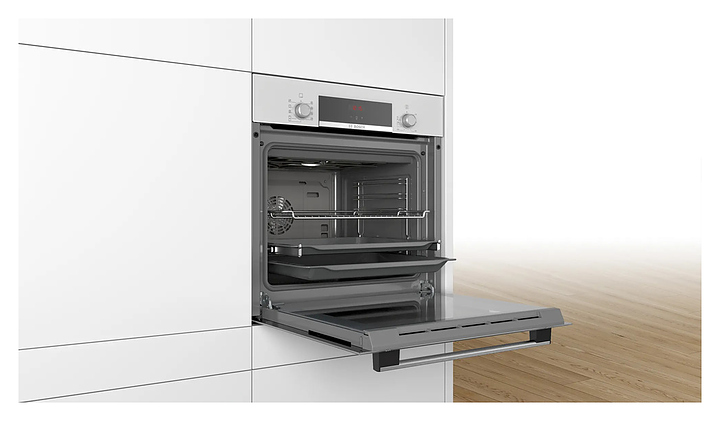 Духовой шкаф Bosch HBF534EW0Q серии 4 используется в квартирах и частных домах для приготовления широкого спектра блюд из овощей, мяса, птицы и рыбы, а также выпечки десертов и хлебобулочных изделий. Модель оснащена сенсорными и поворотными элементами управления, LED дисплеем, многофункциональными часами Easy Clock, таймером и галогенным внутренним освещением. Специальное покрытие внутренних стенок духовки EcoClean с катализаторами гарантирует легкую очистку. В комплект поставки входят комбинированная решетка, эмалированный и универсальный противни. Особенности: