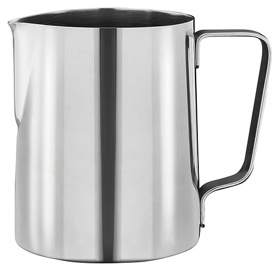 Питчер для подогрева и вспенивания молока с интегрированным в борт изливом и дугообразной рукояткой