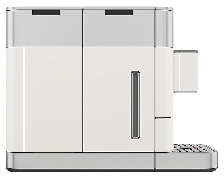 Верхняя панель с рельефной поверхностью для возможности хранения и пассивного подогрева чашек, съемной крышкой над загрузочным отделением и фиксируемой в открытом положении откидной крышкой над резервуаром для воды
