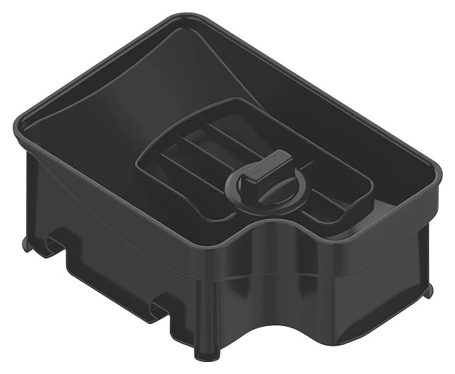 Верхняя панель с рельефной поверхностью для возможности хранения и пассивного подогрева чашек, съемной крышкой над загрузочным отделением и фиксируемой в открытом положении откидной крышкой над резервуаром для воды