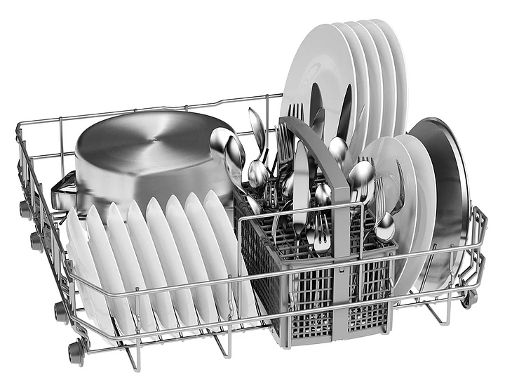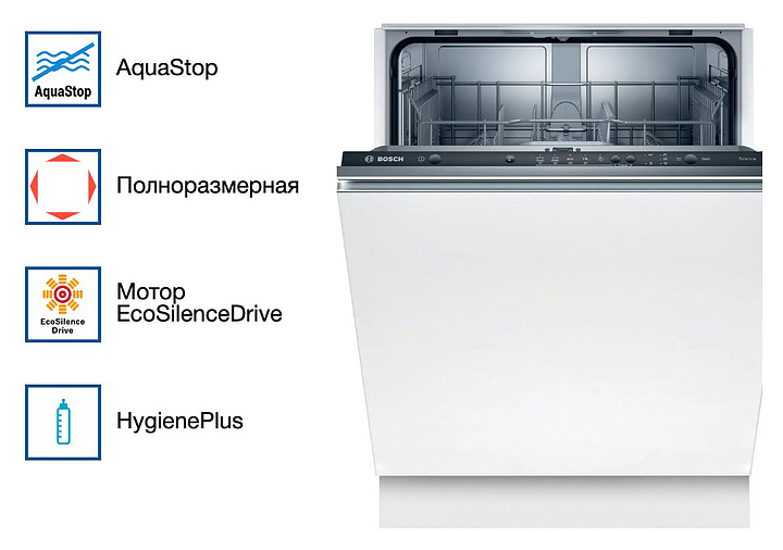 Посудомоечная машина Bosch SMV25BX02R серии 4 предназначена для гигиенической обработки и последующей сушки различной посуды в домашних условиях. Модель оснащена инверторным двигателем EcoSilence Drive, моечной камерой с откидной дверью, закрытой панелью управления с кнопками и регулируемыми по высоте ножками. Система ActiveWater использует точное количество воды, необходимое для каждой загрузки в зависимости от количества и степени загрязненности посуды, что обеспечивает эффективное и экологически ответственное мытье. Внутренний резервуар выполнен из нержавеющей стали и пластика. Особенности: