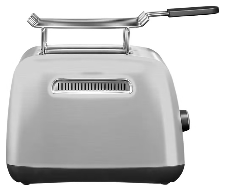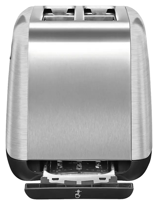 Тостер KitchenAid 5KMT221ESX используется в офисах, гостиницах и домашних условиях для обжаривания ломтиков хлеба различных сортов. Модель оснащена 2 слотами для тостов с моторизованным приводом, кабелем питания с вилкой, электромеханической панелью управления с поворотным переключателем, нажимными функциональными клавишами и светодиодными индикаторами. Корпус обтекаемой формы выполнен из стали с поверхностью оттенка нержавеющая сталь, центральная панель облицовки с сатинированной поверхностью, решетки слотов – из нержавеющей стали с глянцевой серебристой поверностью, основание – из черного полимера с матовой поверхностью, поддон для крошек – из нержавеющей стали, фурнитура с серебристой поверхностью. В комплект поставки входят инструкция по эксплуатации, гарантийный талон и заводская упаковка. Особенности: