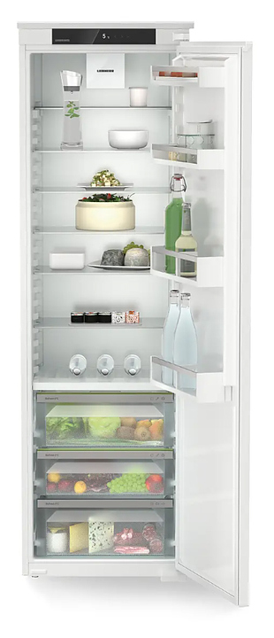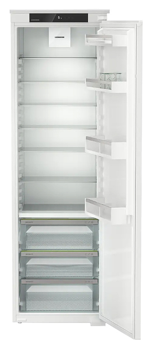 Встраиваемый холодильник Liebherr IRBSd 5120 серии Plus предназначен для охлаждения и хранения пищевых продуктов и напитков в гостиничных комплексах, офисах, а также домашних условиях. Модель оснащена сенсорной панелью управления с функцией блокировки от детей и монохромным ЖК-дисплеем. Полки в камере выполнены из стекла, полки на двери - из белого пластика, сухая задняя стена - из пластика. Особенности: